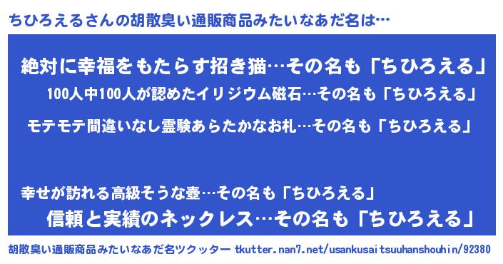 | ヘコむあだ名 | 『ちひっふぃ~』『ちひろえる(小並感)』 |