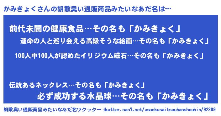 | ヘコむあだ名 | 『かみきょく(苦笑)』『かみっふぃ~』 |
