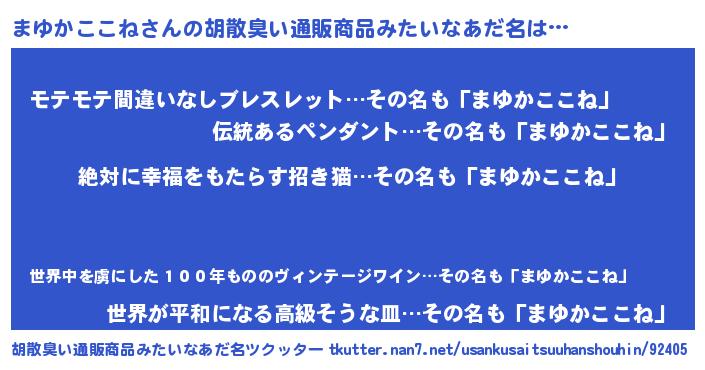 | ヘコむあだ名 | 『まゆかここね(笑)』『まゆふぇ~』 |