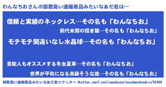 | 意味不明あだ名 | 『ペロリンわんなちお』『自称わんなちお』 |