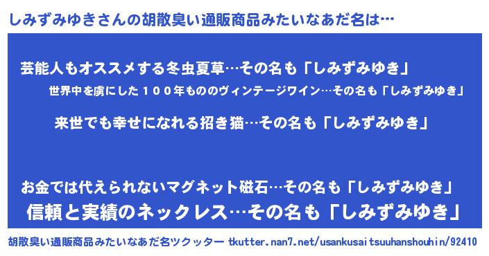 | 意味不明あだ名 | 『永久保存しみずみゆき』 |