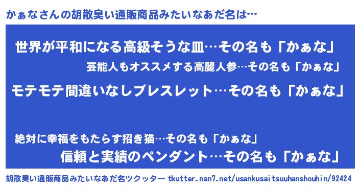 | 肩書あだ名 | 『かぁな社長』『かぁな中尉』 |
