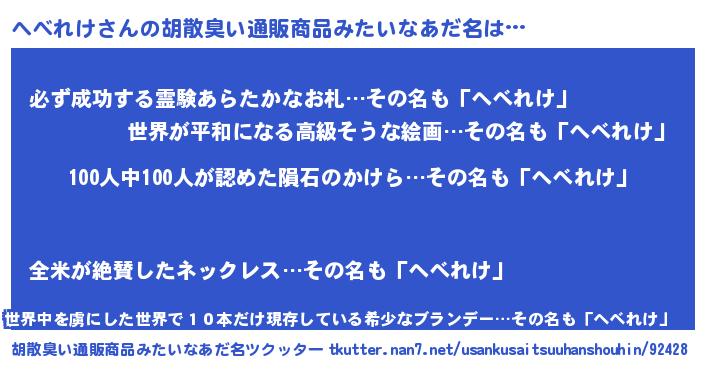 | ヒーロー風カッコイイあだ名 | 『友情の使者へべれけ』『仮面ヘベダー』 |