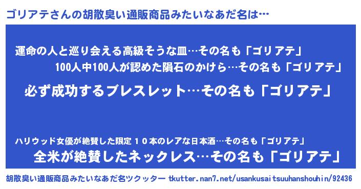 | 伝説のあだ名 | 『伝説の竜騎士ゴリアテ』 |