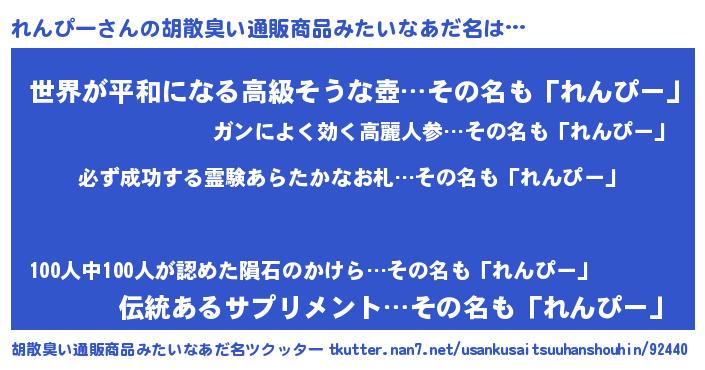 | ヘコむあだ名 | 『れんもー』『なまこ酢』『れんお』 |