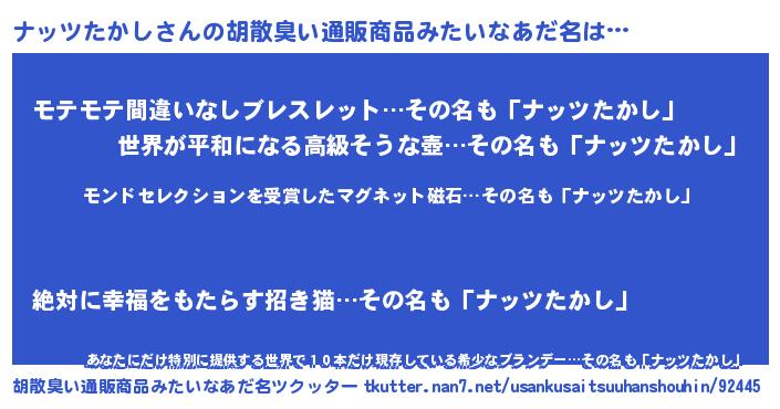 | ヒーロー風カッコイイあだ名 | 『天空の使者ナッツたかし』 |