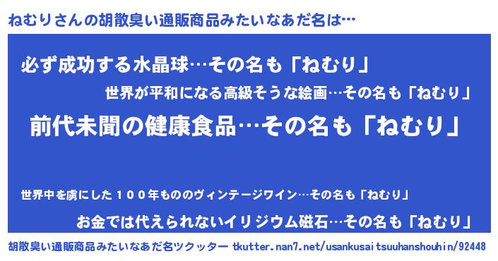| ヘコむあだ名 | 『ねむり(爆)』『ねむもー』『豆乳』 |