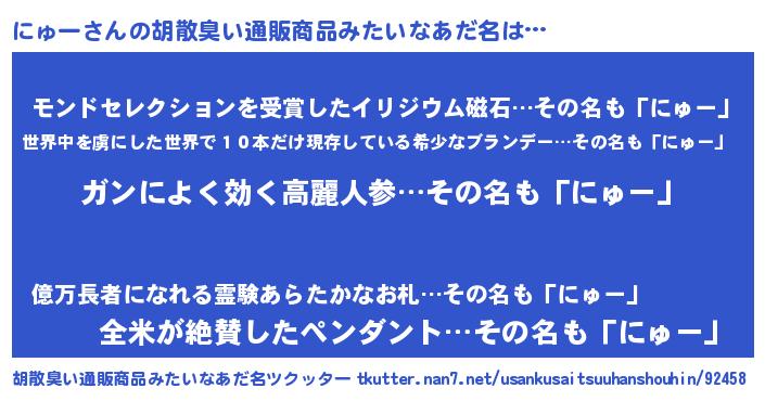 | ポケモン風あだ名 | 『ニュセウス』『ニックウザ』 |