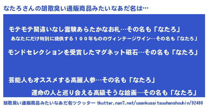 | 意味不明あだ名 | 『眠気覚ましガムなたろ味』『自称なたろ』 |