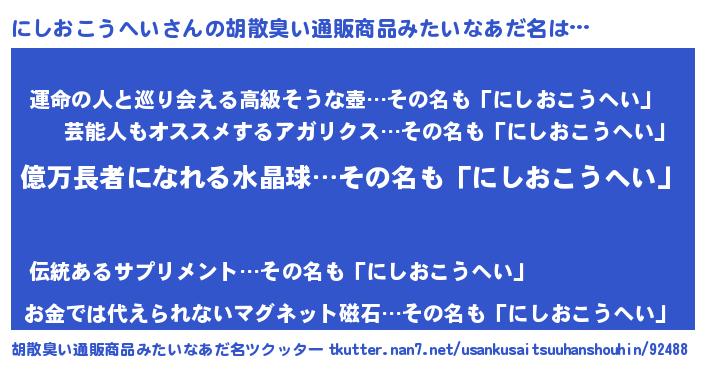 | ヒーロー風カッコイイあだ名 | 『スーパーニシオコウヘイ』 |