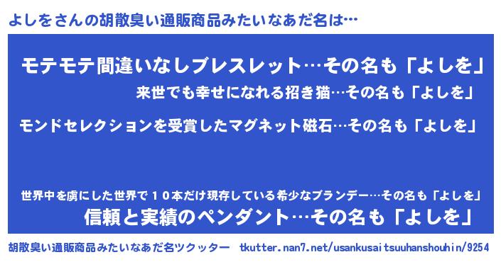 よしをさんの胡散臭い通販商品みたいなあだ名をツクッター!