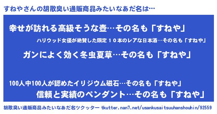 | 恥ずかしいあだ名 | 『スネヤデラックス』『すねっちょ』 |