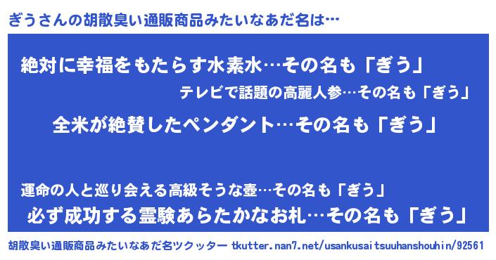 | ヘコむあだ名 | 『ぎうっぺ』『ぎう(遠い目)』 |