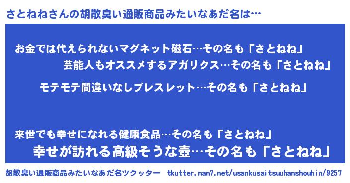 | 意味不明あだ名 | 『なめこ科さとねね属』『自称さとねね』 |