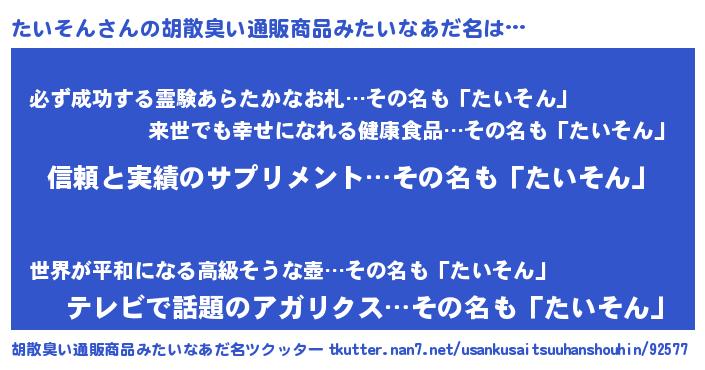 | ヘコむあだ名 | 『たい太郎』『たいもー』『なまこ酢』 |