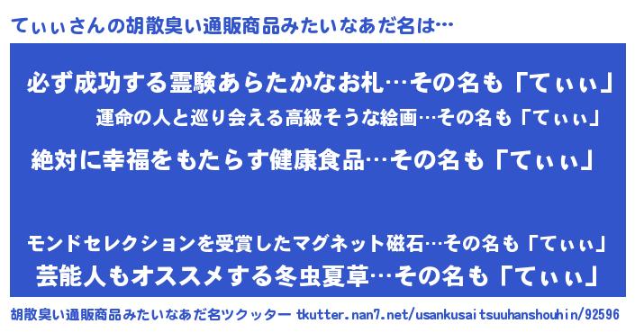 | ヘコむあだ名 | 『てぃぃ(苦笑)』『てぃもー』 |