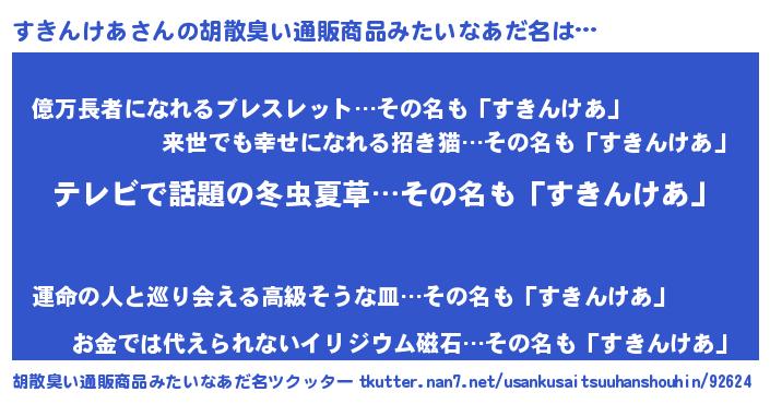 | ヘコむあだ名 | 『すきもー』『すきんけあ(笑)』 |