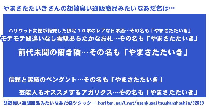 やまさたたいきさんの胡散臭い通販商品みたいなあだ名をツクッター!