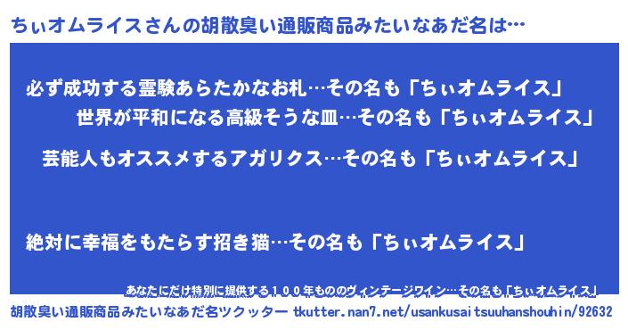 ちぃオムライスさんの胡散臭い通販商品みたいなあだ名をツクッター!