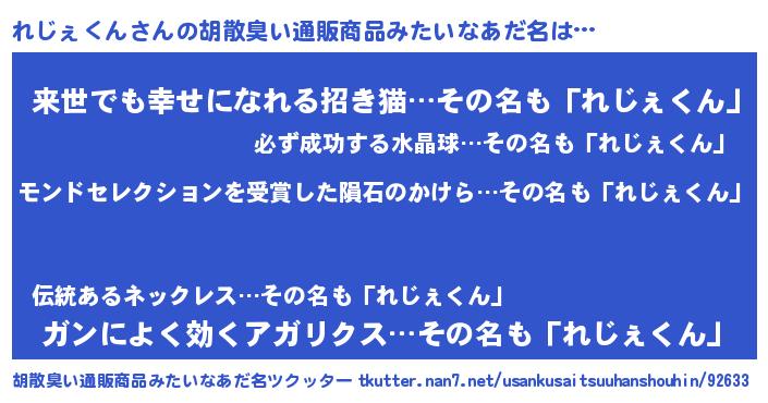 | ヘコむあだ名 | 『れじぇくん(遠い目)』『れじにー』 |