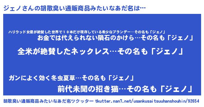 | 意味不明あだ名 | 『とにかく怪しいジェノ』 |
