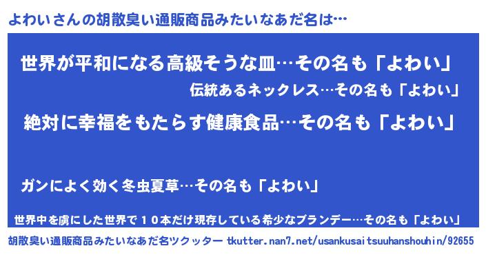 | 意味不明あだ名 | 『永久保存よわい』『よわいフォーエバー』 |