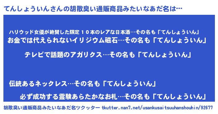 | 男性向けラノベタイトル風あだ名 | 『転生したらてんしょういんだった件』 |