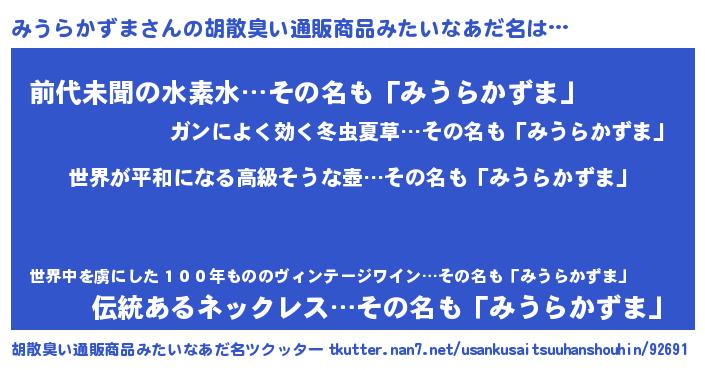 | 男性向けラノベタイトル風あだ名 | 『みうらかずまに滅ぼされるだけの簡単なお仕事です』 |