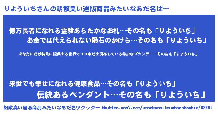 | 男性向けラノベタイトル風あだ名 | 『この素晴らしい世界にりよういちを!』 |