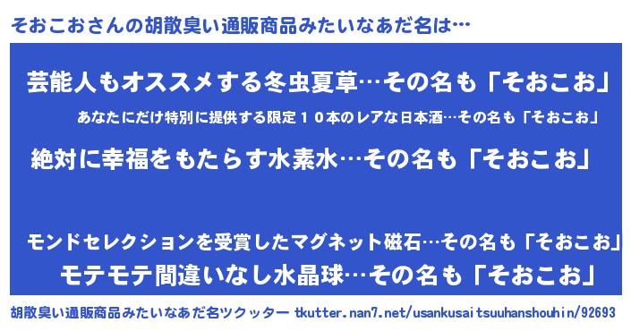 | ヘコむあだ名 | 『そおこお(苦笑)』『そおもー』 |