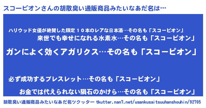 | ヘコむあだ名 | 『スコーピオン(苦笑)』『スコにゅー』 |