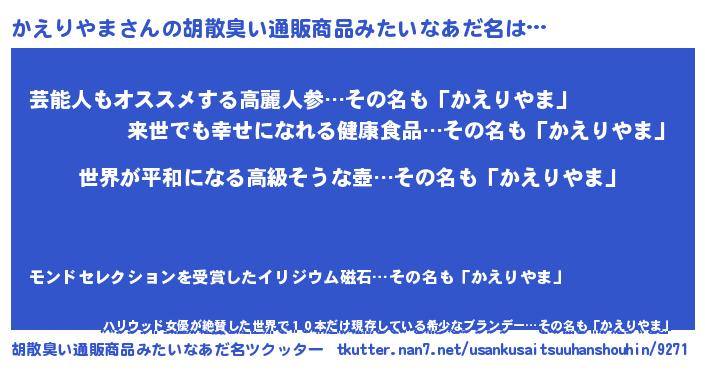 | 肩書あだ名 | 『かえりやま大統領』『かえりやま総統』 |
