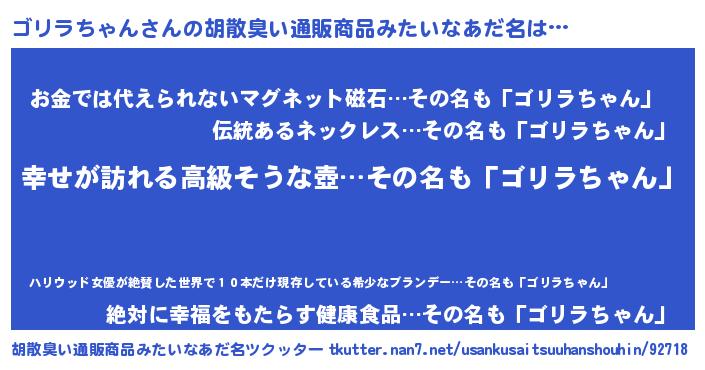 | ヒーロー風カッコイイあだ名 | 『ウルトラゴリラちゃんマン』 |