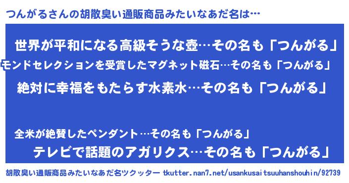 | 意味不明あだ名 | 『永久保存つんがる』『自称つんがる』 |