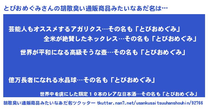 | 恥ずかしいあだ名 | 『とびっちょ』『トビオメグミデラックス』 |