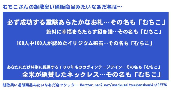 | ヒーロー風カッコイイあだ名 | 『正義の使者むちこ』『スーパームチコ』 |