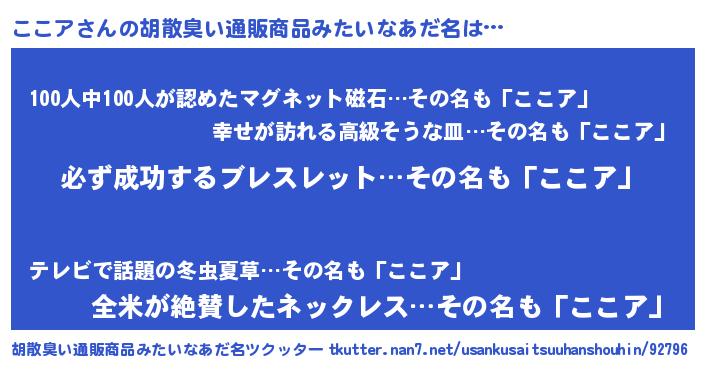 | ヒーロー風カッコイイあだ名 | 『スーパーココア』『正義の使者ここア』 |