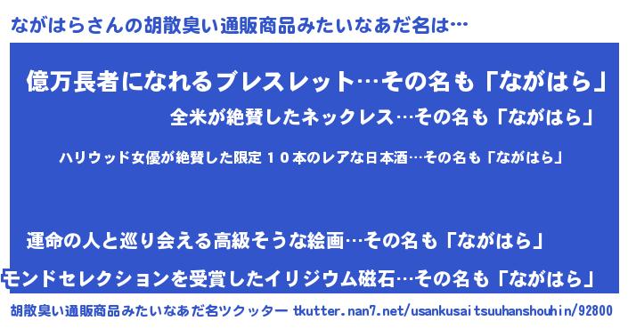 | 意味不明あだ名 | 『住所不定無職ながはら(40歳)』 |