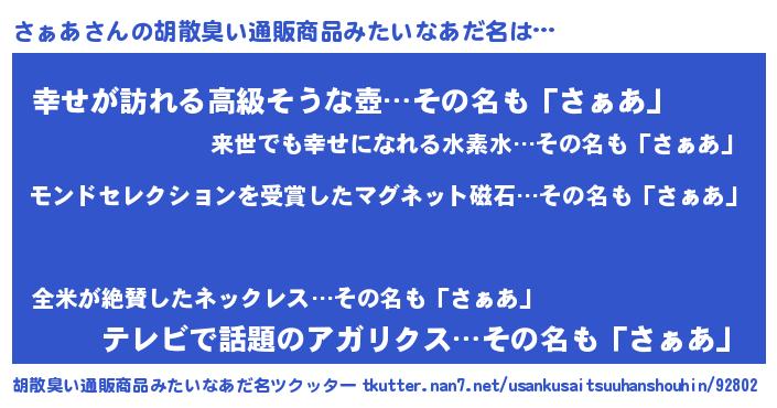 | ヘコむあだ名 | 『酢こんぶ』『さぁあ(笑)』 |