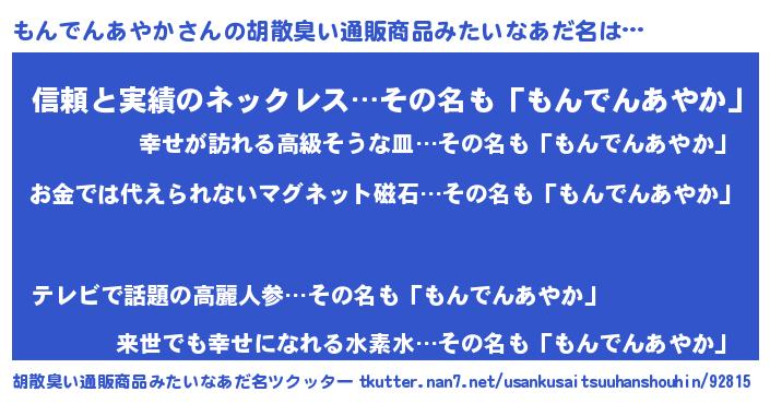 | 肩書あだ名 | 『もんでんあやか教授』 |