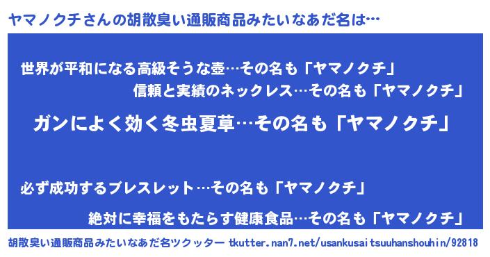 | 意味不明あだ名 | 『自称ヤマノクチ』『永久保存ヤマノクチ』 |