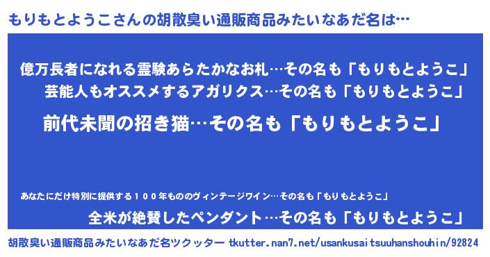 | ヘコむあだ名 | 『もりもとようこ(笑)』『もりもー』 |