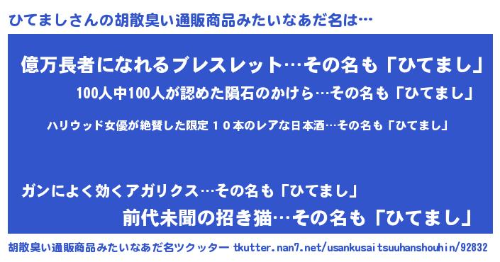 | ヘコむあだ名 | 『ひてもー』『ひてまし(笑)』 |