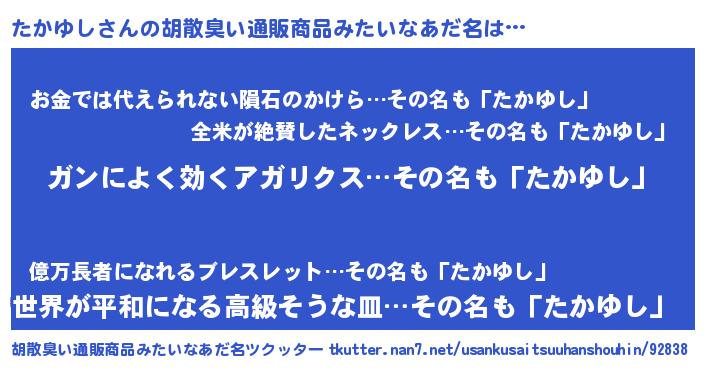 | 意味不明あだ名 | 『自称たかゆし』『たかゆしフォーエバー』 |
