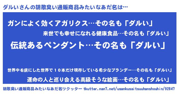 | 欧米人風あだ名 | 『ウサインダルい』『トリンドルダルい』 |