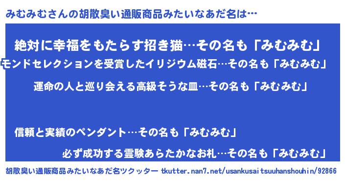 | ヒーロー風カッコイイあだ名 | 『ウルトラみむみむマン』『ネオミムミム』 |