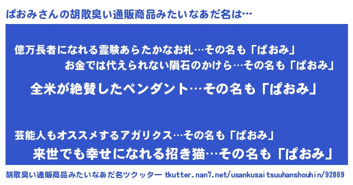 | 意味不明あだ名 | 『とにかく怪しいぱおみ』 |
