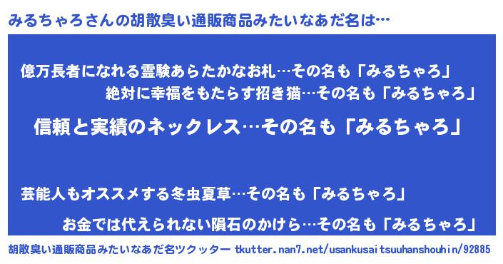 | 意味不明あだ名 | 『とにかく怪しいみるちゃろ』 |