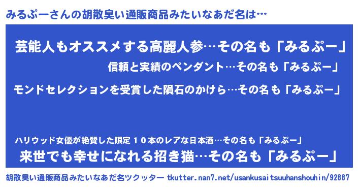 | ヒーロー風カッコイイあだ名 | 『慈愛の使者みるぷー』『ネオミルプー』 |