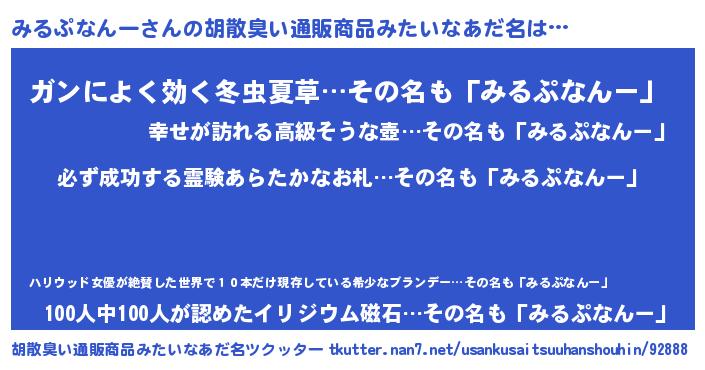 | 男性向けラノベタイトル風あだ名 | 『みるぷなんーの憂鬱』 |